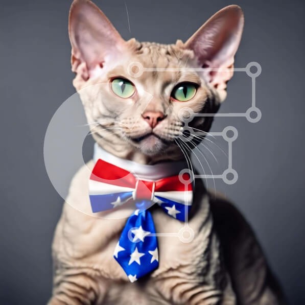Υπάρχει δυνατότητα προσωποποίησης με δική σας φωτογραφία και προσαρμογής διαστάσεων κατόπιν παραγγελίας. Το συγεκεριμενο Puzzle 10x10 cm – 25 κομμ παρουσιαζει Η γάτα στην εικόνα φορά ένα πατριωτικό παπιγιόν με σχέδιο αμερικανικής σημαίας. Κάνει άμεση οπτική επαφή με την κάμερα, επιδεικνύοντας τα λαμπερά πράσινα μάτια του. Τα αστέρια είναι ορατά στο πλάι του λαιμού της γάτας, υποδεικνύοντας ειδική