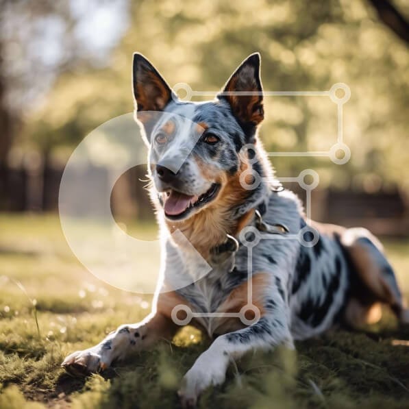 Υπάρχει δυνατότητα προσωποποίησης με δική σας φωτογραφία και προσαρμογής διαστάσεων κατόπιν παραγγελίας. Το συγεκεριμενο Puzzle 10x10 cm – 25 κομμ παρουσιαζει Η εικόνα απεικονίζει ένα γαλανόλευκο σκυλί ξαπλωμένο στο γρασίδι μπροστά από δέντρα. Ο σκύλος χαμογελά και φαίνεται να απολαμβάνει τον χρόνο του σε εξωτερικούς χώρους. Μπορεί να είναι ένας αυστραλιανός σκύλος βοοειδών, ο οποίος χρησιμοποιείτ