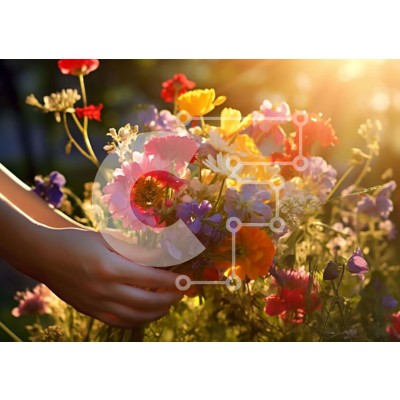 Υπάρχει δυνατότητα προσωποποίησης με δική σας φωτογραφία και προσαρμογής διαστάσεων κατόπιν παραγγελίας. Το συγεκεριμενο puzzle παρουσιαζει Η εικόνα δείχνει το χέρι μιας γυναίκας που κρατά ένα ζωντανό και πολύχρωμο μπουκέτο λουλουδιών σε ένα χωράφι. Τα λουλούδια είναι ένα όμορφο μείγμα αποχρώσεων, που δείχνει ότι μπορεί να έχουν μαζευτεί πρόσφατα από έναν κήπο με λουλούδια. Η σκηνή προκαλεί μια αίσθηση απόλαυσης τ