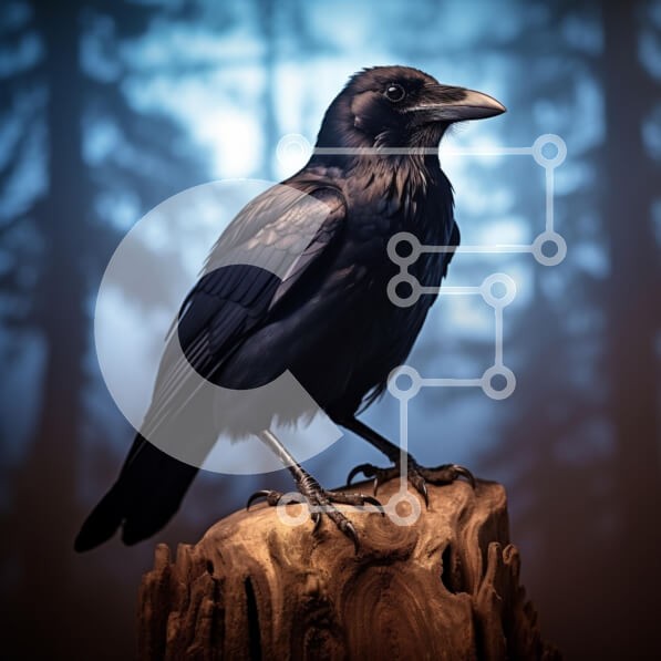 Υπάρχει δυνατότητα προσωποποίησης με δική σας φωτογραφία και προσαρμογής διαστάσεων κατόπιν παραγγελίας. Το συγεκεριμενο Puzzle 10x10 cm – 25 κομμ παρουσιαζει Η εικόνα παρουσιάζει ένα μοναχικό κοράκι σκαρφαλωμένο σε ένα ανάγλυφο ξύλινο κούτσουρο, με φόντο ένα θολό δάσος. Τα κομψά μαύρα φτερά του πουλιού αστράφτουν διακριτικά στον απαλό φωτισμό, τονίζοντας το κοφτερό ράμφος και τα έντονα μάτια του.