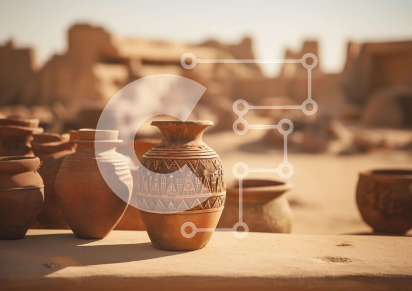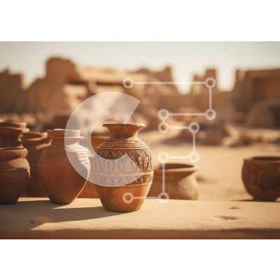 Υπάρχει δυνατότητα προσωποποίησης με δική σας φωτογραφία και προσαρμογής διαστάσεων κατόπιν παραγγελίας. Το συγεκεριμενο puzzle παρουσιαζει Η εικόνα παρουσιάζει πολλά κεραμικά αγγεία που κάθονται σε ένα τραπέζι στην έρημο. Υπάρχουν πολλά δοχεία διαφορετικών σχημάτων και μεγεθών, μερικά από τα οποία φαίνεται να είναι διακοσμημένα με σχέδια ή σχέδια. Μερικά από αυτά μπορεί να έχουν χρησιμοποιηθεί για διακοσμητικούς
