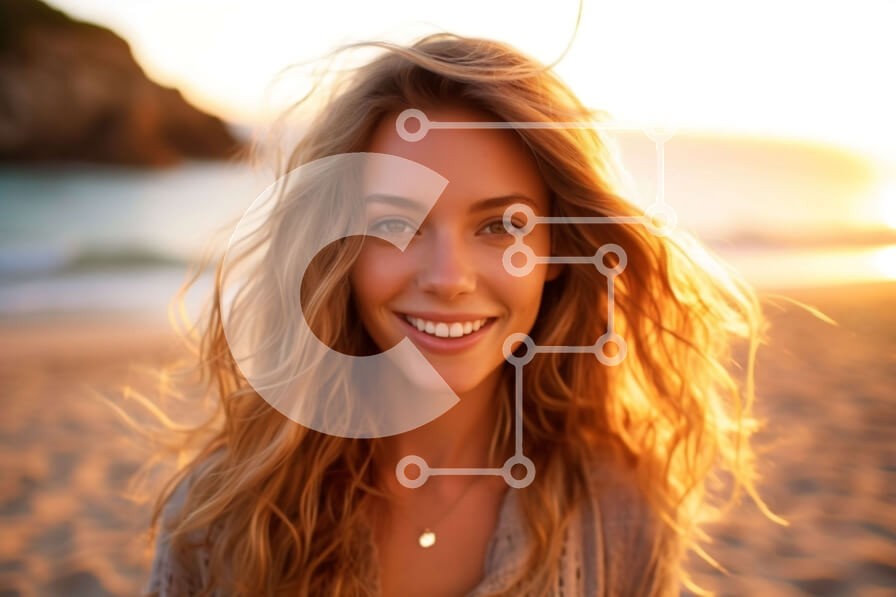Υπάρχει δυνατότητα προσωποποίησης με δική σας φωτογραφία και προσαρμογής διαστάσεων κατόπιν παραγγελίας. Το συγεκεριμενο puzzle παρουσιαζει Αυτή η εικόνα παρουσιάζει μια νεαρή γυναίκα με μακριά ξανθά μαλλιά να χαμογελά στην κάμερα ενώ στέκεται σε μια παραλία το ηλιοβασίλεμα. Φοράει ένα λευκό τοπ και ένα τζιν σορτς και φοράει γυαλιά ηλίου. Ο ήλιος δύει πίσω της, ρίχνοντας μια ζεστή λάμψη στο πρόσωπο και τα μαλλιά τ