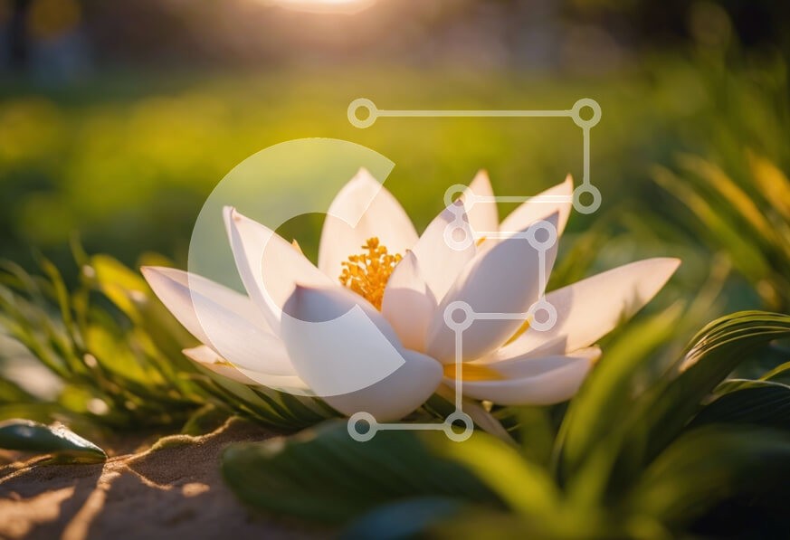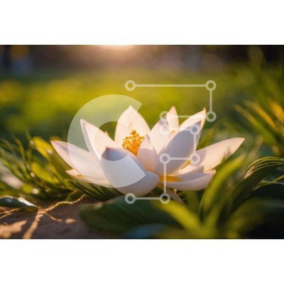 Υπάρχει δυνατότητα προσωποποίησης με δική σας φωτογραφία και προσαρμογής διαστάσεων κατόπιν παραγγελίας. Το συγεκεριμενο puzzle παρουσιαζει Αυτή η εικόνα παρουσιάζει ένα λευκό λουλούδι λωτού στη μέση του πράσινου γρασιδιού, με τον ήλιο να δύει πίσω του. Το λουλούδι φαίνεται να αναπτύσσεται έξω από το έδαφος, δημιουργώντας μια διακοσμητική και γαλήνια ατμόσφαιρα. Είναι η τέλεια αναπαράσταση της ομορφιάς της φύσης κ