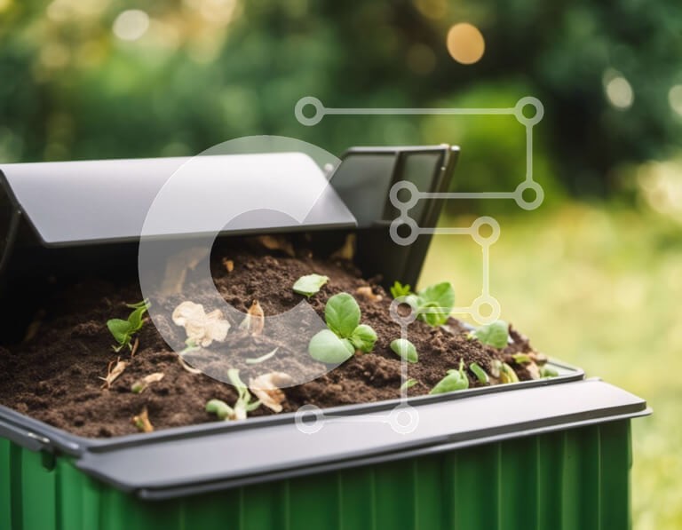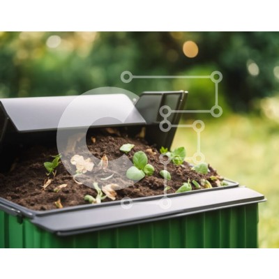 Υπάρχει δυνατότητα προσωποποίησης με δική σας φωτογραφία και προσαρμογής διαστάσεων κατόπιν παραγγελίας. Το συγεκεριμενο puzzle παρουσιαζει Αυτή η εικόνα παρουσιάζει έναν πράσινο κάδο απορριμμάτων γεμάτο βρωμιά και φυτά, ιδανικό για σκοπούς κηπουρικής ή κομποστοποίησης. Τοποθετείται σε χώρο με γρασίδι, υποδηλώνοντας ότι μπορεί να είναι μέρος εξωτερικού κήπου. Πολλά μικρά φυτά αναπτύσσονται έξω από το έδαφος, δίνον