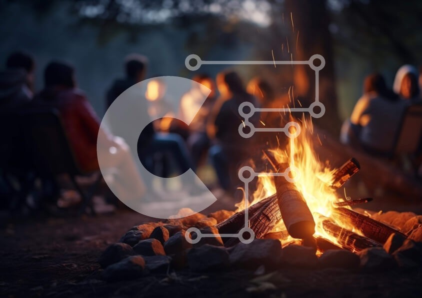 Υπάρχει δυνατότητα προσωποποίησης με δική σας φωτογραφία και προσαρμογής διαστάσεων κατόπιν παραγγελίας. Το συγεκεριμενο puzzle παρουσιαζει Αυτή η εικόνα παρουσιάζει πολλούς ανθρώπους συγκεντρωμένους γύρω από μια φωτιά στο δάσος τη νύχτα. Κάθονται γύρω από τη φωτιά, απολαμβάνουν τη ζεστασιά των φλόγων και συναναστρέφονται μεταξύ τους. Υπάρχει επίσης ένας ανοιχτός χώρος πίσω τους, υποδηλώνοντας ότι μπορεί να απολαμ
