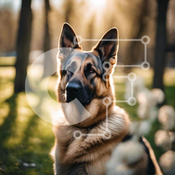 Υπάρχει δυνατότητα προσωποποίησης με δική σας φωτογραφία και προσαρμογής διαστάσεων κατόπιν παραγγελίας. Το συγεκεριμενο Puzzle 10x10 cm – 25 κομμ παρουσιαζει Η εικόνα δείχνει έναν γερμανικό ποιμενικό σκύλο να κάθεται στο γρασίδι, με το κεφάλι του γερμένο προς τον ήλιο. Ο σκύλος φαίνεται να κοιτάζει την κάμερα, υποδηλώνοντας ενδιαφέρον ή περιέργεια. Απεικονίζει μια σκηνή ενός σκύλου που απολαμβάνε