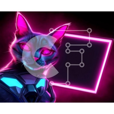 Υπάρχει δυνατότητα προσωποποίησης με δική σας φωτογραφία και προσαρμογής διαστάσεων κατόπιν παραγγελίας. Το συγεκεριμενο Puzzle 10x10 cm – 25 κομμ παρουσιαζει Η εικόνα απεικονίζει μια φουτουριστική γάτα νέον με έντονα ροζ μάτια σε σκούρο φόντο. Η γάτα έχει μια στυλιζαρισμένη εμφάνιση, που εκπέμπει ζωντανές μοβ και μπλε αποχρώσεις και είναι διακοσμημένη με μια πανοπλία εμπνευσμένη από επιστημονική