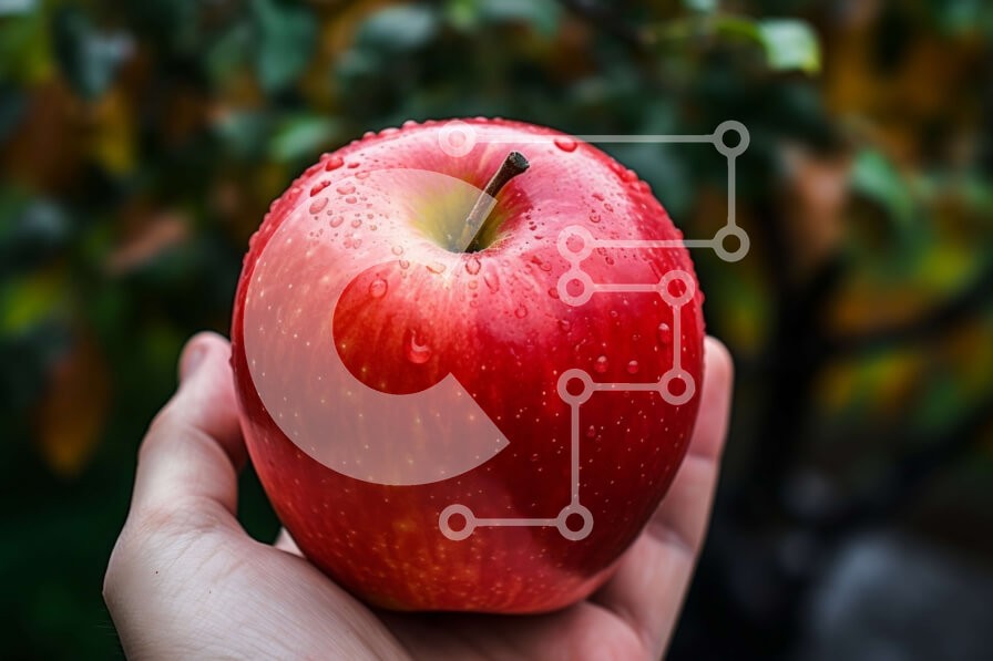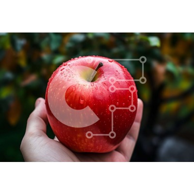Υπάρχει δυνατότητα προσωποποίησης με δική σας φωτογραφία και προσαρμογής διαστάσεων κατόπιν παραγγελίας. Το συγεκεριμενο puzzle παρουσιαζει Αυτή η εικόνα παρουσιάζει ένα κόκκινο μήλο που κρατιέται στο χέρι κάποιου. Το μήλο φαίνεται να έχει μόλις πλυθεί, καθώς στην επιφάνειά του υπάρχουν σταγονίδια νερού. Το φόντο είναι μια θολή εικόνα δέντρων και πρασίνου, που υποδηλώνει ότι το μήλο μαζεύτηκε πρόσφατα από ένα δέντ