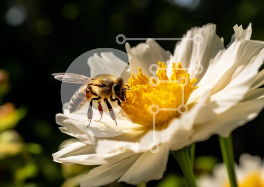 Υπάρχει δυνατότητα προσωποποίησης με δική σας φωτογραφία και προσαρμογής διαστάσεων κατόπιν παραγγελίας. Το συγεκεριμενο puzzle παρουσιαζει Η εικόνα απεικονίζει μια μέλισσα πάνω από ένα ανοιχτό, λευκό λουλούδι. Μπορεί να τρέφεται με νέκταρ ή γύρη από το λουλούδι, το οποίο είναι πιθανό να παρέχει τροφή για τη μέλισσα. Υπάρχουν επίσης άλλα έντομα που υπάρχουν στην εικόνα, όπως πεταλούδες και σκώροι, που θα μπορούσαν