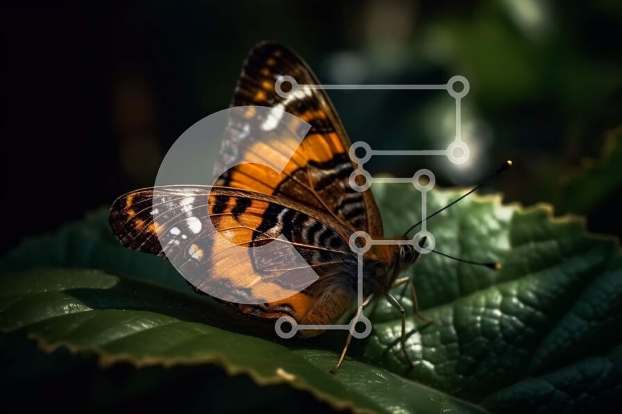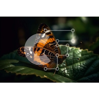 Υπάρχει δυνατότητα προσωποποίησης με δική σας φωτογραφία και προσαρμογής διαστάσεων κατόπιν παραγγελίας. Το συγεκεριμενο puzzle παρουσιαζει Αυτή η εικόνα είναι μια κοντινή λήψη μιας πεταλούδας σκαρφαλωμένης σε ένα σκούρο πράσινο φύλλο. Η πεταλούδα έχει πορτοκαλί και μαύρα φτερά με λευκές κηλίδες και αποτυπώνεται με εξαιρετική λεπτομέρεια. Οι σκιές στα φτερά και το φύλλο προσθέτουν βάθος στην εικόνα, καθιστώντας τη
