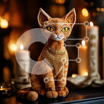 Υπάρχει δυνατότητα προσωποποίησης με δική σας φωτογραφία και προσαρμογής διαστάσεων κατόπιν παραγγελίας. Το συγεκεριμενο Puzzle 10x10 cm – 25 κομμ παρουσιαζει Η εικόνα παρουσιάζει ένα βελούδινο ειδώλιο γάτας με λεπτομερή χαρακτηριστικά του προσώπου και ένα περίτεχνο κολάρο, που κάθεται σε περίοπτη θέση σε ένα απαλά φωτισμένο φόντο στολισμένο με κεριά. Η γάτα έχει εντυπωσιακά κίτρινα μάτια και μια