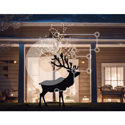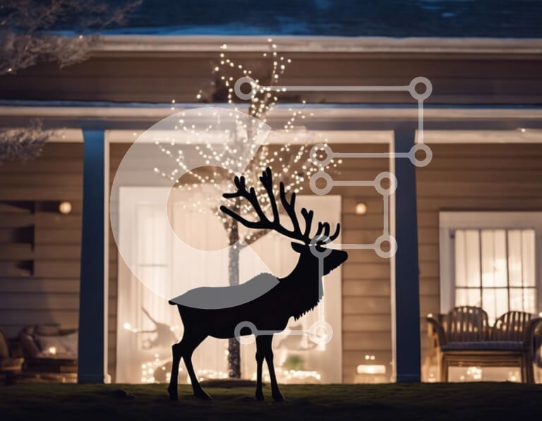 | Όνομα Προϊόντος | Intra Συλλεκτικό Ξύλινο Παζλ Plywood 4mm - Σιλουέτα ελάφια μπροστά από διακοσμημένο σπίτι για διακοπές Σε Ξύλινο Κουτί - Διαστάσεις: 10x10 cm – 25 κομμάτια |