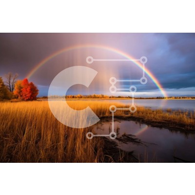 Υπάρχει δυνατότητα προσωποποίησης με δική σας φωτογραφία και προσαρμογής διαστάσεων κατόπιν παραγγελίας. Το συγεκεριμενο puzzle παρουσιαζει Αυτή η εικόνα παρουσιάζει ένα όμορφο ουράνιο τόξο πάνω από ένα σώμα νερού με καλάμια σε πρώτο πλάνο. Τα ζωηρά χρώματα του ουράνιου τόξου αντανακλούν στο νερό δημιουργώντας μια μαγευτική σκηνή. Τα καλάμια προσθέτουν βάθος στην εικόνα και της δίνουν μια αίσθηση γαλήνης. Ένα μον