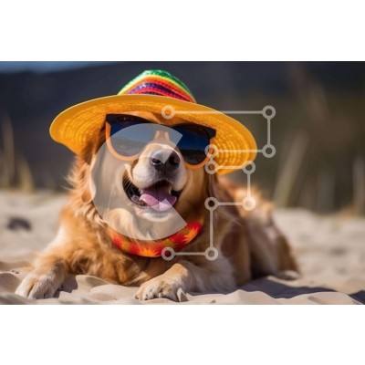 Υπάρχει δυνατότητα προσωποποίησης με δική σας φωτογραφία και προσαρμογής διαστάσεων κατόπιν παραγγελίας. Το συγεκεριμενο puzzle παρουσιαζει Στην εικόνα απεικονίζεται ένας σκύλος Γκόλντεν Ριτρίβερ που φοράει γυαλιά ηλίου και ένα πορτοκαλί καπέλο, να χαλαρώνει στην αμμώδη παραλία. Ο σκύλος φαίνεται να απολαμβάνει τον ηλιόλουστο καιρό και το εξωτερικό περιβάλλον. Ένα μοναδικό puzzle που συνδυάζει ποιότητα, αισθητική