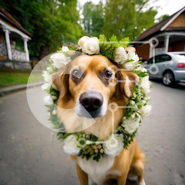 Υπάρχει δυνατότητα προσωποποίησης με δική σας φωτογραφία και προσαρμογής διαστάσεων κατόπιν παραγγελίας. Το συγεκεριμενο Puzzle 10x10 cm – 25 κομμ παρουσιαζει Αυτή η εικόνα παρουσιάζει έναν καφέ σκύλο να στέκεται στο δρόμο με μια υπέροχη διάταξη λευκών λουλουδιών στο κεφάλι του. Στο βάθος, υπάρχουν πολλά αυτοκίνητα, υποδηλώνοντας ότι ο σκύλος μπορεί να μεταφέρεται ή να περιποιείται και να είναι έτ