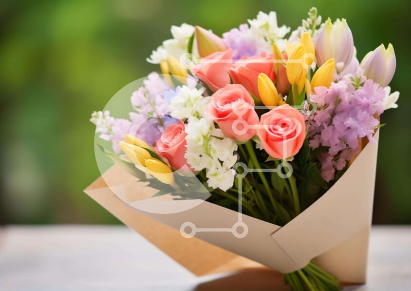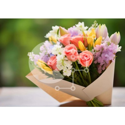 Υπάρχει δυνατότητα προσωποποίησης με δική σας φωτογραφία και προσαρμογής διαστάσεων κατόπιν παραγγελίας. Το συγεκεριμενο puzzle παρουσιαζει Η εικόνα παρουσιάζει ένα μπουκέτο με πολύχρωμα λουλούδια, το οποίο είναι τυλιγμένο σε χαρτί και τοποθετημένο πάνω από ένα τραπέζι εξωτερικού χώρου. Υπάρχουν πολλά διαφορετικά είδη λουλουδιών που υπάρχουν στο μπουκέτο, συμπεριλαμβανομένων τριαντάφυλλων, τουλίπες και μαργαρίτες.