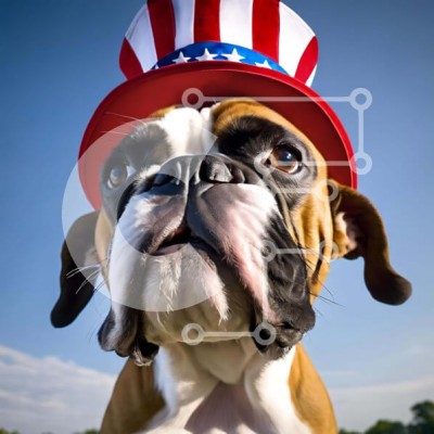 Υπάρχει δυνατότητα προσωποποίησης με δική σας φωτογραφία και προσαρμογής διαστάσεων κατόπιν παραγγελίας. Το συγεκεριμενο Puzzle 10x10 cm – 25 κομμ παρουσιαζει Η εικόνα απεικονίζει έναν σκύλο που φορά ένα κόκκινο, λευκό και μπλε πατριωτικό καπέλο σε έναν καταγάλανο ουρανό. Η έκφραση του σκύλου είναι περήφανη και σε εγρήγορση, επιδεικνύοντας το μοναδικό μοτίβο του τριχώματος με ένα μείγμα καφέ και λ