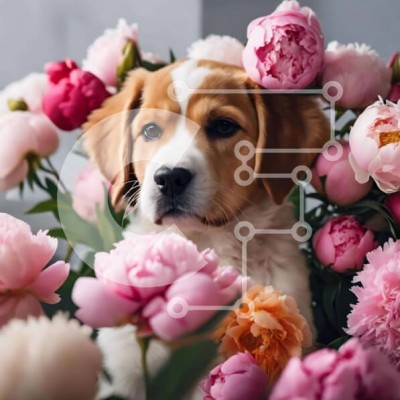 Υπάρχει δυνατότητα προσωποποίησης με δική σας φωτογραφία και προσαρμογής διαστάσεων κατόπιν παραγγελίας. Το συγεκεριμενο Puzzle 10x10 cm – 25 κομμ παρουσιαζει Η εικόνα απεικονίζει έναν καφέ και λευκό σκύλο που κάθεται στη μέση των ροζ παιώνιες. Ο σκύλος φαίνεται να απολαμβάνει το περιβάλλον του, καθώς περιβάλλεται από τα λουλούδια. Μπορεί να είναι ένα στοργικό κατοικίδιο ή μπορεί απλώς να ποζάρει