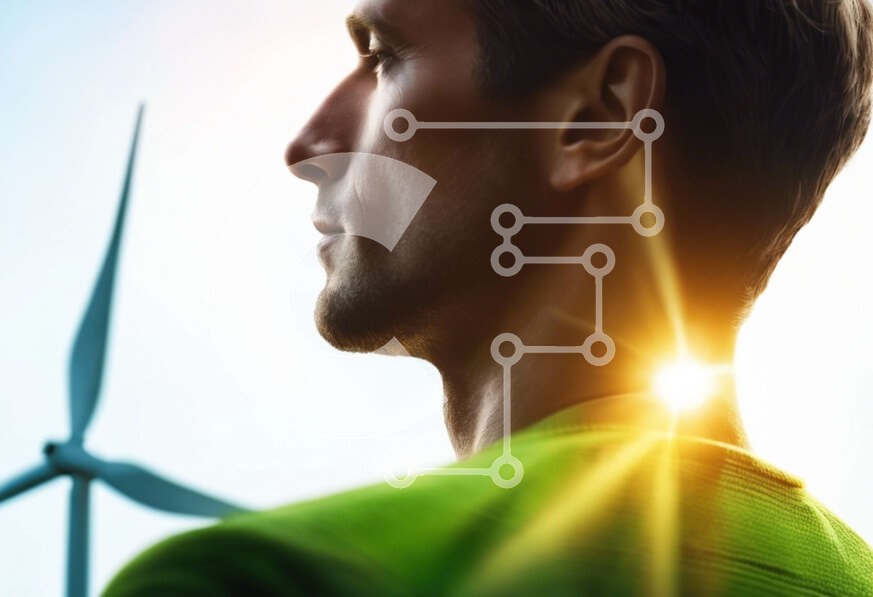 Υπάρχει δυνατότητα προσωποποίησης με δική σας φωτογραφία και προσαρμογής διαστάσεων κατόπιν παραγγελίας. Το συγεκεριμενο puzzle παρουσιαζει Αυτή η εικόνα δείχνει την εκπληκτική ομορφιά των ανεμογεννητριών σε ένα φυσικό τοπίο. Ένας άντρας με πράσινο πουκάμισο στέκεται μπροστά από τις ανεμογεννήτριες, κοιτάζοντας τον ήλιο. Το φόντο είναι γεμάτο με αρκετούς ανεμόμυλους, συμπεριλαμβανομένου ενός που είναι ψηλότερος απ