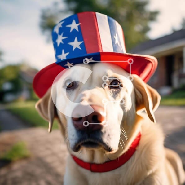 Υπάρχει δυνατότητα προσωποποίησης με δική σας φωτογραφία και προσαρμογής διαστάσεων κατόπιν παραγγελίας. Το συγεκεριμενο Puzzle 10x10 cm – 25 κομμ παρουσιαζει Η εικόνα δείχνει έναν καφέ και λευκό σκύλο που φορά ένα καπέλο με θέμα την αμερικανική σημαία. Ο σκύλος στέκεται στο πεζοδρόμιο και κοιτάζει την κάμερα με ελαφρώς γερμένο κεφάλι. Αποπνέει μια αίσθηση γοητείας και πατριωτισμού. Ένα μοναδικό