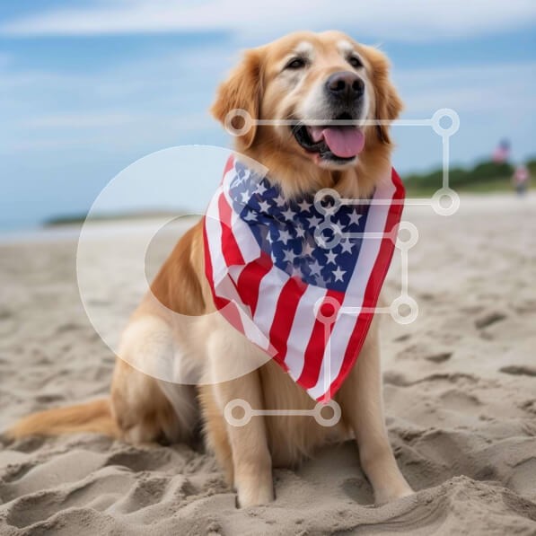 Υπάρχει δυνατότητα προσωποποίησης με δική σας φωτογραφία και προσαρμογής διαστάσεων κατόπιν παραγγελίας. Το συγεκεριμενο Puzzle 10x10 cm – 25 κομμ παρουσιαζει Η εικόνα απεικονίζει ένα σκυλί Γκόλντεν Ριτρίβερ που φορά μια μπαντάνα με αμερικανική σημαία και κάθεται στην άμμο στην παραλία. Ο σκύλος φαίνεται να είναι χαλαρός και άνετος, πιθανώς να μην κινείται ή να συμμετέχει σε σωματική δραστηριότητα