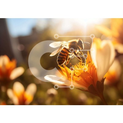 Υπάρχει δυνατότητα προσωποποίησης με δική σας φωτογραφία και προσαρμογής διαστάσεων κατόπιν παραγγελίας. Το συγεκεριμενο puzzle παρουσιαζει Η εικόνα δείχνει μια μέλισσα να κάθεται πάνω από ένα πορτοκαλί λουλούδι στο πρώτο πλάνο. Μπορεί να τρέφεται με νέκταρ ή γύρη από το λουλούδι, το οποίο είναι πιθανό να προσελκύσει άλλα έντομα όπως πεταλούδες ή σκώρους. Η μέλισσα φαίνεται να αιωρείται πάνω από τα λουλούδια και ν