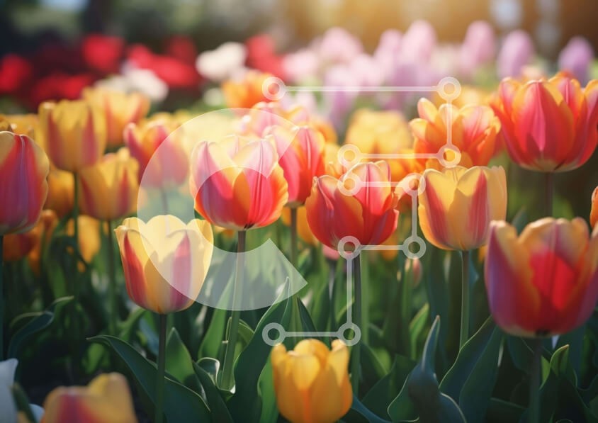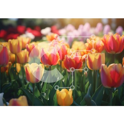 Υπάρχει δυνατότητα προσωποποίησης με δική σας φωτογραφία και προσαρμογής διαστάσεων κατόπιν παραγγελίας. Το συγεκεριμενο puzzle παρουσιαζει Η εικόνα δείχνει ένα ζωντανό πεδίο με τουλίπες σε πλήρη άνθηση, που εμφανίζει μια πολύχρωμη σειρά από ροζ, πορτοκαλί, κίτρινες και μοβ αποχρώσεις. Άλλα λουλούδια, όπως οι μαργαρίτες, οι νάρκισσοι και τα γεράνια προσθέτουν στην ποικιλόμορφη άνθη του χωραφιού, υποδεικνύοντας ένα