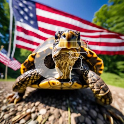 Υπάρχει δυνατότητα προσωποποίησης με δική σας φωτογραφία και προσαρμογής διαστάσεων κατόπιν παραγγελίας. Το συγεκεριμενο Puzzle 10x10 cm – 25 κομμ παρουσιαζει Η εικόνα δείχνει μια περίεργη χελώνα που στέκεται μπροστά από μια αμερικανική σημαία. Η χελώνα φαίνεται να κοιτάζει απευθείας την κάμερα, υποδεικνύοντας την περιέργειά της για τη σημαία ή το περιβάλλον της. Θα μπορούσε επίσης να σημαίνει ότι