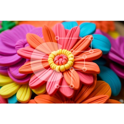 Υπάρχει δυνατότητα προσωποποίησης με δική σας φωτογραφία και προσαρμογής διαστάσεων κατόπιν παραγγελίας. Το συγεκεριμενο puzzle παρουσιαζει Αυτή η εικόνα παρουσιάζει μια κοντινή άποψη μιας δέσμης από πολύχρωμα πλαστικά λουλούδια τοποθετημένα σε ένα διαφανές γυάλινο βάζο. Τα άνθη είναι έντονα χρωματισμένα με πορτοκαλί, κίτρινα, ροζ και μοβ πέταλα. Το αγγείο έχει κυρτό σχήμα με στενό άνοιγμα στο πάνω μέρος. Τα λουλο