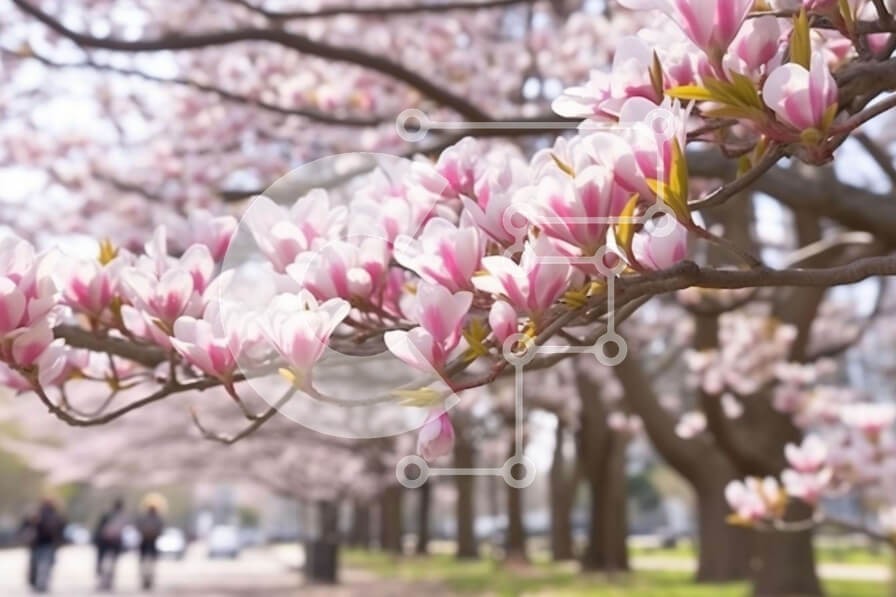 Υπάρχει δυνατότητα προσωποποίησης με δική σας φωτογραφία και προσαρμογής διαστάσεων κατόπιν παραγγελίας. Το συγεκεριμενο puzzle παρουσιαζει Η εικόνα δείχνει ένα ροζ δέντρο μανόλια σε πλήρη άνθιση την άνοιξη. Οι άνθρωποι μπορούν να φανούν να περπατούν στο κοντινό πεζοδρόμιο, απολαμβάνοντας πιθανώς την εποχή της ανθοφορίας. Το περιβάλλον υποδηλώνει ένα αστικό περιβάλλον με δέντρα να πλαισιώνουν το μονοπάτι. Ένα μον