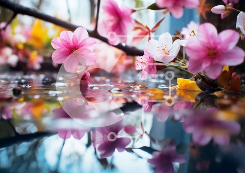 Υπάρχει δυνατότητα προσωποποίησης με δική σας φωτογραφία και προσαρμογής διαστάσεων κατόπιν παραγγελίας. Το συγεκεριμενο puzzle παρουσιαζει Η εικόνα παρουσιάζει μια ομάδα ροζ λουλουδιών που αντανακλώνται στο νερό, πιθανώς λόγω του βροχερού καιρού. Υπάρχουν επίσης μικρές σταγόνες νερού σε μερικά από τα λουλούδια, υποδηλώνοντας ότι μπορεί να είναι βρεγμένα ή να έχουν πέσει από τους μίσχους τους. Είναι πιθανό αυτά τα
