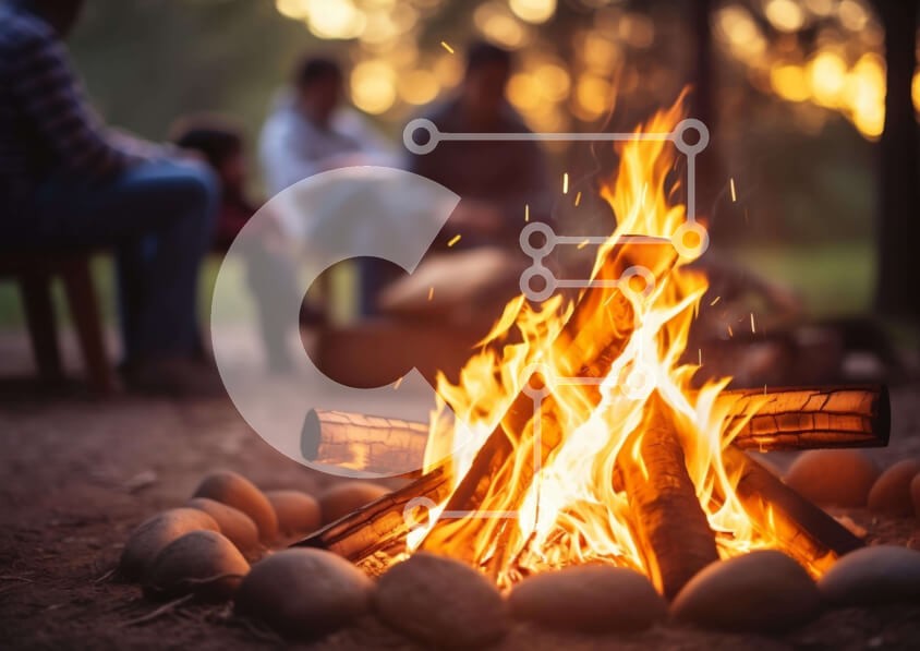 Υπάρχει δυνατότητα προσωποποίησης με δική σας φωτογραφία και προσαρμογής διαστάσεων κατόπιν παραγγελίας. Το συγεκεριμενο puzzle παρουσιαζει Η εικόνα απεικονίζει μια φωτιά στο δάσος, με ανθρώπους να κάθονται γύρω της και να απολαμβάνουν τη ζεστασιά της φωτιάς. Υπάρχουν αρκετοί βράχοι που περιβάλλουν τη φωτιά, κάτι που μπορεί να υποδηλώνει ότι οι κατασκηνωτές διασκεδάζουν ή συμμετέχουν σε κάποιες υπαίθριες δραστηριό