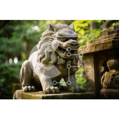 Υπάρχει δυνατότητα προσωποποίησης με δική σας φωτογραφία και προσαρμογής διαστάσεων κατόπιν παραγγελίας. Το συγεκεριμενο puzzle παρουσιαζει Η εικόνα παρουσιάζει ένα πέτρινο άγαλμα λιονταριού, το οποίο είναι τοποθετημένο πάνω από μερικές πέτρες στον κήπο. Το άγαλμα φαίνεται να είναι κατασκευασμένο από μάρμαρο ή ασβεστόλιθο και έχει σχέδιο εμπνευσμένο από την Ασία. Μπορεί να έχει τοποθετηθεί εκεί για διακοσμητικούς
