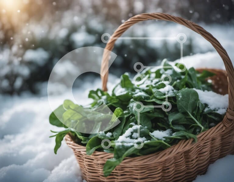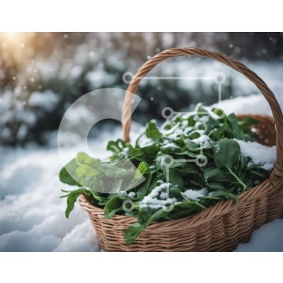 Υπάρχει δυνατότητα προσωποποίησης με δική σας φωτογραφία και προσαρμογής διαστάσεων κατόπιν παραγγελίας. Το συγεκεριμενο puzzle παρουσιαζει Αυτή η εικόνα δείχνει ένα ψάθινο καλάθι γεμάτο με φρέσκα φύλλα σπανακιού σε μια χιονισμένη επιφάνεια. Το ζωντανό πράσινο χρώμα των φύλλων ξεχωρίζει στο λευκό χιόνι, δημιουργώντας μια οπτικά ελκυστική αντίθεση. Η φωτογραφία τονίζει τη δυνατότητα συγκομιδής του σπανακιού κατά τη