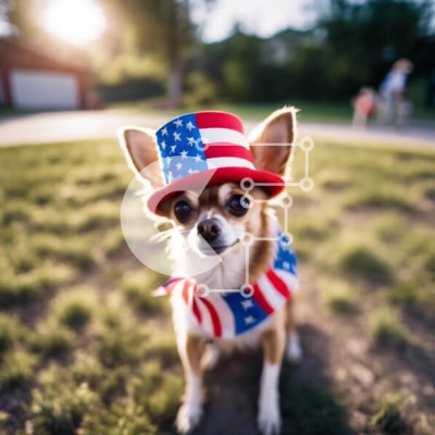 Υπάρχει δυνατότητα προσωποποίησης με δική σας φωτογραφία και προσαρμογής διαστάσεων κατόπιν παραγγελίας. Το συγεκεριμενο Puzzle 10x10 cm – 25 κομμ παρουσιαζει Η εικόνα απεικονίζει ένα μικρό σκυλί που φορά ένα καπέλο με θέμα την αμερικανική σημαία. Ο σκύλος κάθεται στο γρασίδι, με το κεφάλι του να γέρνει ελαφρά στο πλάι και την ουρά του να δείχνει προς την κατεύθυνση της κάμερας. Φαίνεται να απολαμ