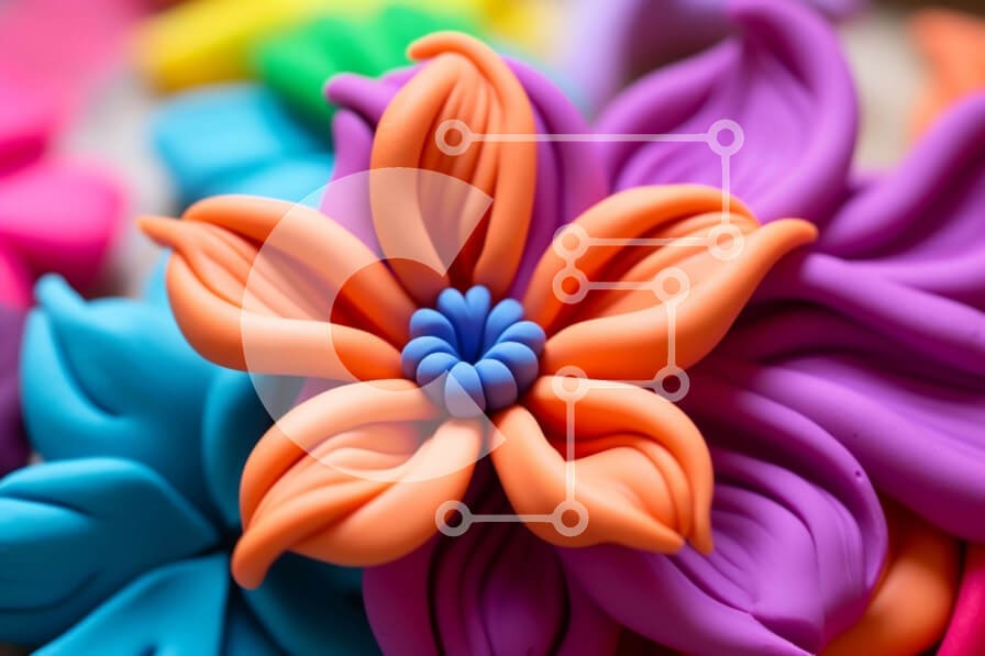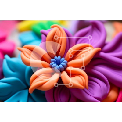 Υπάρχει δυνατότητα προσωποποίησης με δική σας φωτογραφία και προσαρμογής διαστάσεων κατόπιν παραγγελίας. Το συγεκεριμενο puzzle παρουσιαζει Αυτή η εικόνα είναι μια κοντινή όψη ενός πολύχρωμου λουλουδιού από πολυμερή πηλό. Το λουλούδι έχει ένα έντονο πορτοκαλί κέντρο και πέταλα σε αποχρώσεις του ροζ, του μωβ και του κίτρινου. Τα πέταλα είναι διατεταγμένα σε συμμετρικό σχέδιο, με το καθένα να επικαλύπτει ελαφρώς το