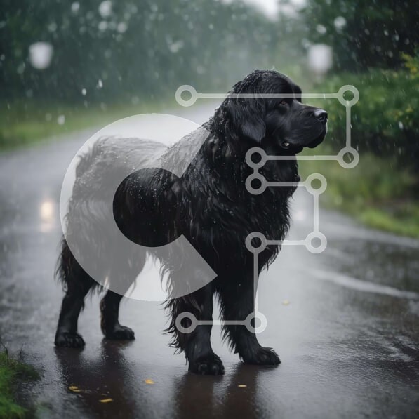 Υπάρχει δυνατότητα προσωποποίησης με δική σας φωτογραφία και προσαρμογής διαστάσεων κατόπιν παραγγελίας. Το συγεκεριμενο Puzzle 10x10 cm – 25 κομμ παρουσιαζει Η εικόνα δείχνει ένα μεγάλο μαύρο σκυλί να στέκεται στον βρεγμένο δρόμο στη βροχή. Ο σκύλος φαίνεται να απολαμβάνει τον καιρό, καθώς στέκεται και κοιτάζει την κάμερα. Είναι πιθανό ο σκύλος να περιμένει τον ιδιοκτήτη του να γυρίσει σπίτι από