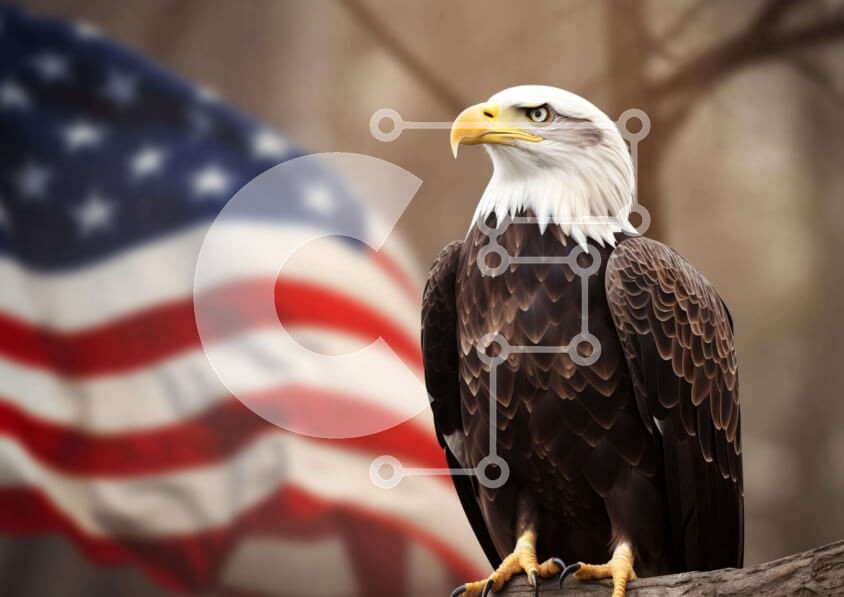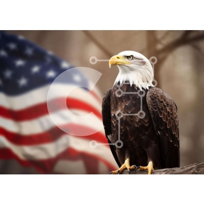 Υπάρχει δυνατότητα προσωποποίησης με δική σας φωτογραφία και προσαρμογής διαστάσεων κατόπιν παραγγελίας. Το συγεκεριμενο puzzle παρουσιαζει Η εικόνα δείχνει έναν Αμερικανικό Φαλακρό Αετό σκαρφαλωμένο σε ένα κλαδί δέντρου με την αμερικανική σημαία στο φόντο. Ο αετός στέκεται ψηλά και φαίνεται να επισκέπτεται το περιβάλλον του, πιθανώς να ξεκουράζεται ή να παρατηρεί για θήραμα καθώς κοιτάζει τη σημαία. Ένα μοναδικό