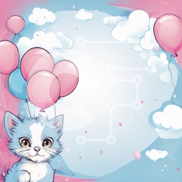 Υπάρχει δυνατότητα προσωποποίησης με δική σας φωτογραφία και προσαρμογής διαστάσεων κατόπιν παραγγελίας. Το συγεκεριμενο Puzzle 10x10 cm – 25 κομμ παρουσιαζει Αυτή η εικόνα παρουσιάζει ένα χαριτωμένο μπλε και άσπρο γατάκι που στέκεται σε ροζ και μπλε φόντο με πολλά ροζ και μπλε μπαλόνια να επιπλέουν στον αέρα γύρω του. Το γατάκι κοιτάζει ψηλά τα μπαλόνια με μια περίεργη έκφραση στο πρόσωπό του. Το