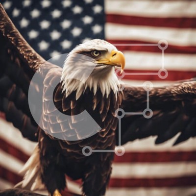 Υπάρχει δυνατότητα προσωποποίησης με δική σας φωτογραφία και προσαρμογής διαστάσεων κατόπιν παραγγελίας. Το συγεκεριμενο Puzzle 10x10 cm – 25 κομμ παρουσιαζει Η εικόνα απεικονίζει έναν φαλακρό αετό με τα φτερά του απλωμένα μπροστά από μια αμερικανική σημαία. Είναι πιθανό ότι το πουλί είναι σκαρφαλωμένο στην κορυφή κάποιου τύπου βράχου ή δέντρου, το οποίο μπορεί να χρησιμοποιήθηκε για να το στηρίξε