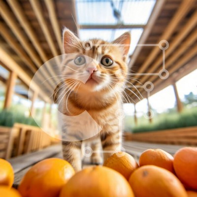 Υπάρχει δυνατότητα προσωποποίησης με δική σας φωτογραφία και προσαρμογής διαστάσεων κατόπιν παραγγελίας. Το συγεκεριμενο Puzzle 10x10 cm – 25 κομμ παρουσιαζει Αυτή η εικόνα παρουσιάζει ένα μικρό γατάκι να στέκεται μπροστά από ένα σωρό πορτοκαλιών σε ένα ξύλινο πάτωμα. Το γατάκι κοιτάζει την κάμερα με τα μεγάλα, περίεργα μάτια του. Τα πορτοκάλια είναι διατεταγμένα σε σχήμα πυραμίδας, με τα μικρότερ
