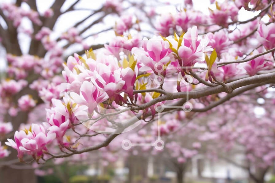 Υπάρχει δυνατότητα προσωποποίησης με δική σας φωτογραφία και προσαρμογής διαστάσεων κατόπιν παραγγελίας. Το συγεκεριμενο puzzle παρουσιαζει Η εικόνα παρουσιάζει ένα ροζ δέντρο μανόλια με λουλούδια να ανθίζουν την άνοιξη. Υπάρχουν πολλά δέντρα που περιβάλλουν το δέντρο, συμπεριλαμβανομένων μερικών που φαίνονται ψηλότερα από τα υπόλοιπα κλαδιά. Αρκετοί άνθρωποι διακρίνονται να περπατούν κατά μήκος του πεζοδρομίου ή