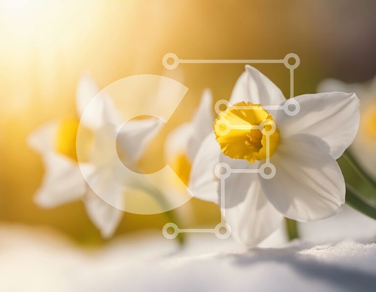 Υπάρχει δυνατότητα προσωποποίησης με δική σας φωτογραφία και προσαρμογής διαστάσεων κατόπιν παραγγελίας. Το συγεκεριμενο puzzle παρουσιαζει Αυτή η εικόνα δείχνει μια κοντινή άποψη μιας ομάδας λευκών νάρκισσους που αναπτύσσονται στο χιόνι. Ο ήλιος λάμπει έντονα στο βάθος, ρίχνοντας ένα ζεστό, χρυσαφένιο φως στα λουλούδια και το χιόνι γύρω τους. Ένα μοναδικό puzzle που συνδυάζει ποιότητα, αισθητική και εμπειρία. Υ