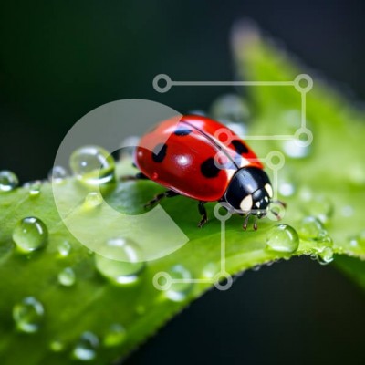 Υπάρχει δυνατότητα προσωποποίησης με δική σας φωτογραφία και προσαρμογής διαστάσεων κατόπιν παραγγελίας. Το συγεκεριμενο Puzzle 10x10 cm – 25 κομμ παρουσιαζει Αυτή η εικόνα δείχνει μια ζωντανή πασχαλίτσα σκαρφαλωμένη σε ένα πράσινο φύλλο, που περιβάλλεται από σταγονίδια νερού. Η πασχαλίτσα, με το έντονο κόκκινο κέλυφος της στολισμένο με μαύρες κηλίδες, ξεχωρίζει στο καταπράσινο φόντο. Τα σταγονίδι