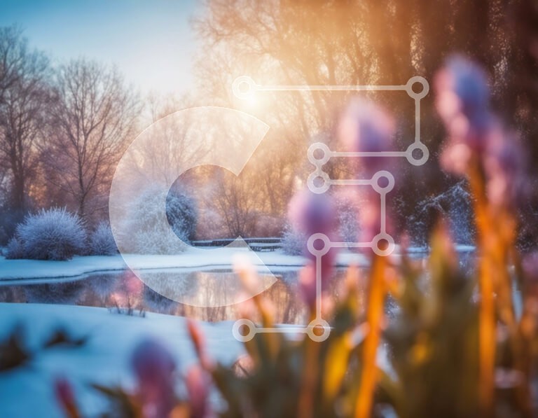 Υπάρχει δυνατότητα προσωποποίησης με δική σας φωτογραφία και προσαρμογής διαστάσεων κατόπιν παραγγελίας. Το συγεκεριμενο puzzle παρουσιαζει Αυτή η εικόνα παρουσιάζει ένα γαλήνιο χειμωνιάτικο σκηνικό με χιονισμένα δέντρα και λουλούδια σε πρώτο πλάνο, μαζί με μια παγωμένη λιμνούλα. Οι μωβ υάκινθοι κοντά στο νερό ενισχύουν τη συνολική ομορφιά του τοπίου. Η φωτογραφία τραβήχτηκε τις πρώτες πρωινές ώρες, αποτυπώνοντας