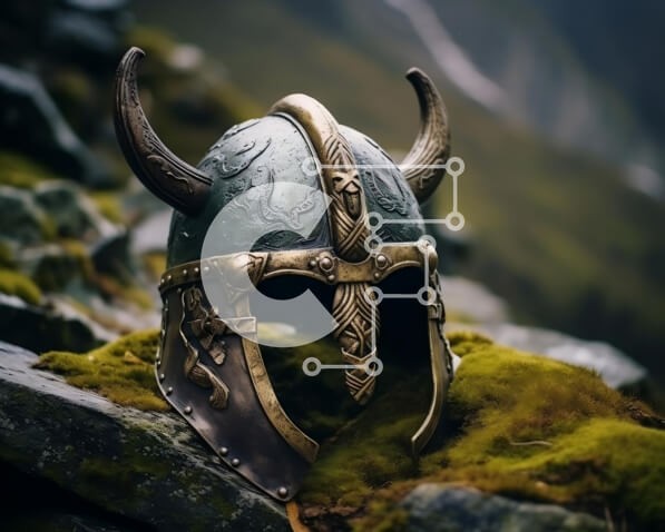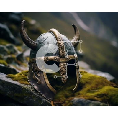 Υπάρχει δυνατότητα προσωποποίησης με δική σας φωτογραφία και προσαρμογής διαστάσεων κατόπιν παραγγελίας. Το συγεκεριμενο puzzle παρουσιαζει Αυτή η εικόνα δείχνει ένα κράνος Βίκινγκ τοποθετημένο στην κορυφή βράχων με βρύα στα βουνά. Το κράνος είναι στολισμένο με κέρατα, υποδηλώνοντας την ιστορική του σημασία ως προστατευτικό κάλυμμα κεφαλής. Ξυπνά το πνεύμα των αρχαίων πολεμιστών Βίκινγκ και τη σύνδεσή τους με το φ