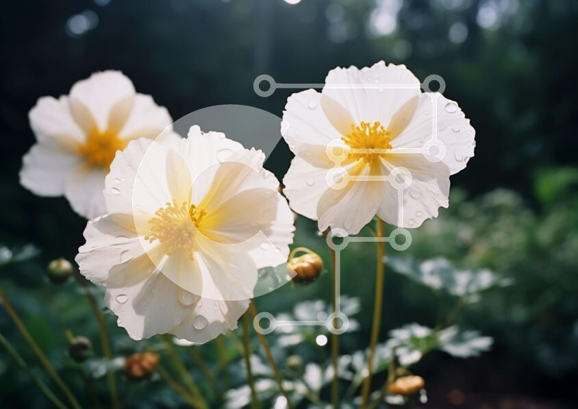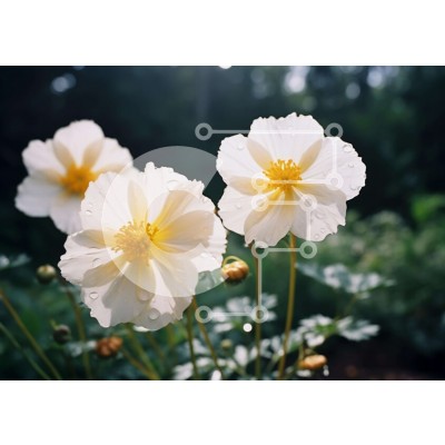 Υπάρχει δυνατότητα προσωποποίησης με δική σας φωτογραφία και προσαρμογής διαστάσεων κατόπιν παραγγελίας. Το συγεκεριμενο puzzle παρουσιαζει Η εικόνα δείχνει τρία λευκά λουλούδια να ανθίζουν σε ένα ζωντανό πράσινο περιβάλλον. Τα λουλούδια στολίζονται με σταγονίδια νερού, ενισχύοντας την ομορφιά τους. Γύρω από τα λουλούδια είναι πλούσια φύλλα, που υπαινίσσονται έναν καλά περιποιημένο κήπο ή διάταξη. Ένα μοναδικό pu