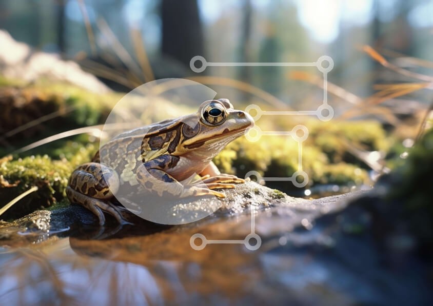 Υπάρχει δυνατότητα προσωποποίησης με δική σας φωτογραφία και προσαρμογής διαστάσεων κατόπιν παραγγελίας. Το συγεκεριμενο puzzle παρουσιαζει Η εικόνα δείχνει έναν μικρό βάτραχο να κάθεται πάνω από βρύα με βρύα στο δάσος. Φαίνεται να ακουμπάει ή να σκαρφαλώνει στον βράχο, κάτι που μπορεί να δείχνει ότι απολαμβάνει το φυσικό περιβάλλον γύρω του. Υπάρχουν πολλά δέντρα και φυτά γύρω από την περιοχή, προσφέροντας έναν ι