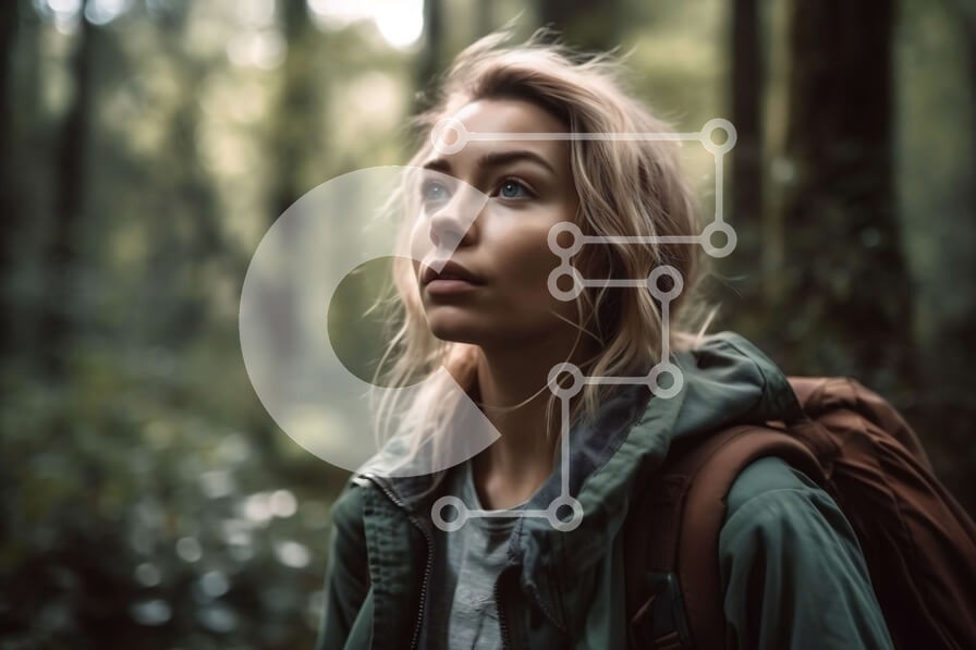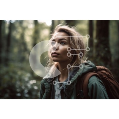 Υπάρχει δυνατότητα προσωποποίησης με δική σας φωτογραφία και προσαρμογής διαστάσεων κατόπιν παραγγελίας. Το συγεκεριμενο puzzle παρουσιαζει Αυτή η εικόνα είναι μιας νεαρής γυναίκας που στέκεται σε ένα πυκνό δάσος. Έχει ξανθά μαλλιά και φοράει ένα πράσινο σακίδιο. Ψηλά δέντρα και φτέρες την περιβάλλουν καθώς κοιτάζει μακριά με μια στοχαστική έκφραση στο πρόσωπό της. Ένα μοναδικό puzzle που συνδυάζει ποιότητα, αισθ