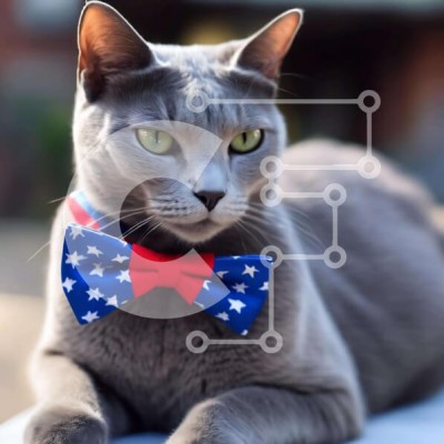 Υπάρχει δυνατότητα προσωποποίησης με δική σας φωτογραφία και προσαρμογής διαστάσεων κατόπιν παραγγελίας. Το συγεκεριμενο Puzzle 10x10 cm – 25 κομμ παρουσιαζει Η γκρίζα γάτα στην εικόνα φορά ένα κόκκινο, λευκό και μπλε παπιγιόν με αστέρια πάνω του. Είναι ξαπλωμένο πάνω από ένα τραπέζι εξωτερικού χώρου, το οποίο μπορεί να είναι σε εξωτερικό ή εσωτερικό χώρο. Δεν υπάρχουν λεπτομέρειες για το σχήμα το